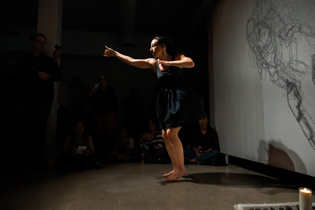 In response, Gurantz was moved to learn the physical movements from the surveillance video, second-by-second, as precisely and directly as possible. This began an eight-year process of working like a somatic detective, choreographically and cinematographically. The resulting sequence of performances, and videos in shot and manipulated found-footage elevates the inchoate intelligence of the body, striving not to “solve the mystery” but to leave the artist and viewer more alert to the limits of not-knowing.