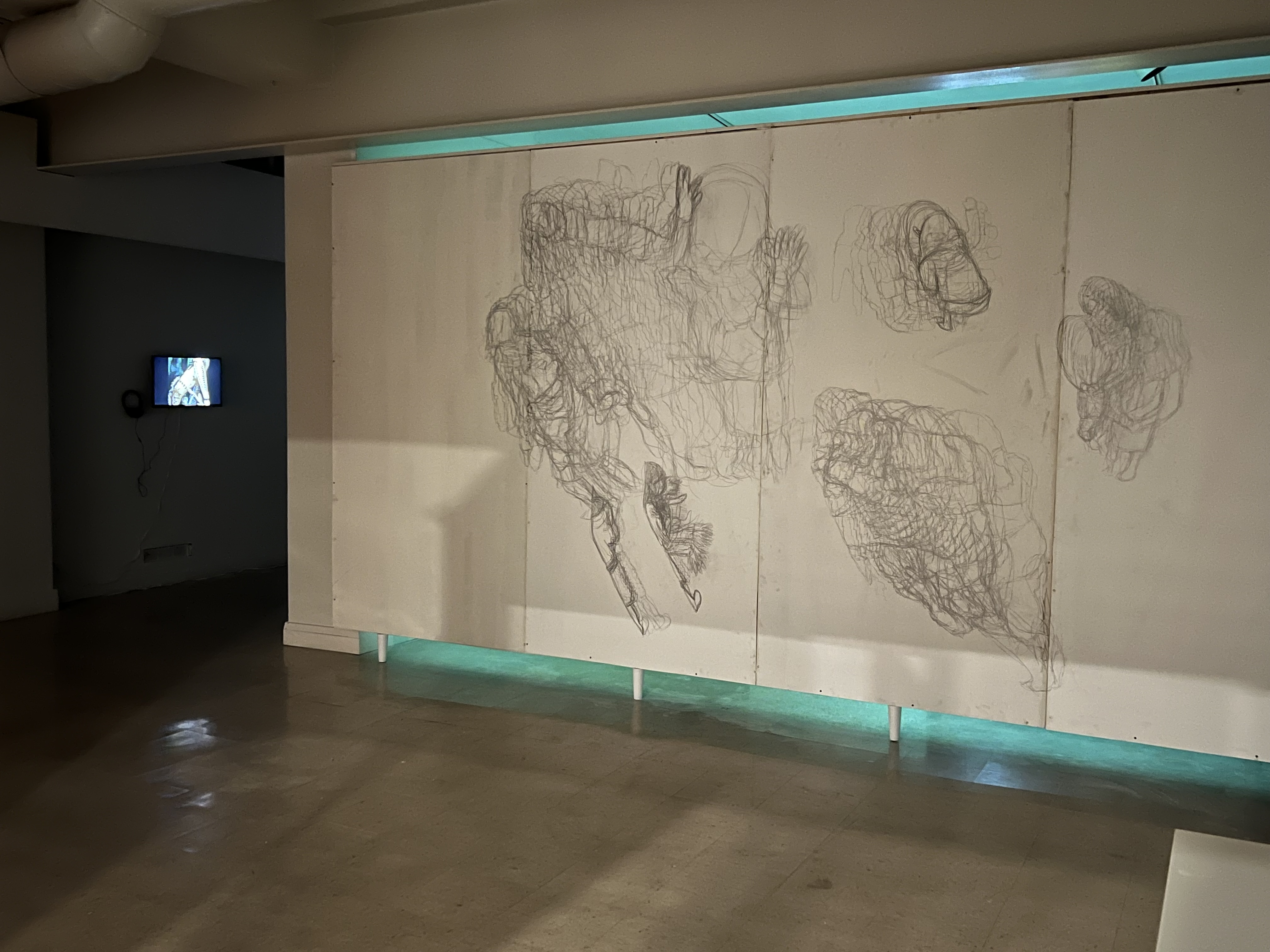 In response, Gurantz was moved to learn the physical movements from the surveillance video, second-by-second, as precisely and directly as possible. This began an eight-year process of working like a somatic detective, choreographically and cinematographically. The resulting sequence of performances, and videos in shot and manipulated found-footage elevates the inchoate intelligence of the body, striving not to “solve the mystery” but to leave the artist and viewer more alert to the limits of not-knowing.