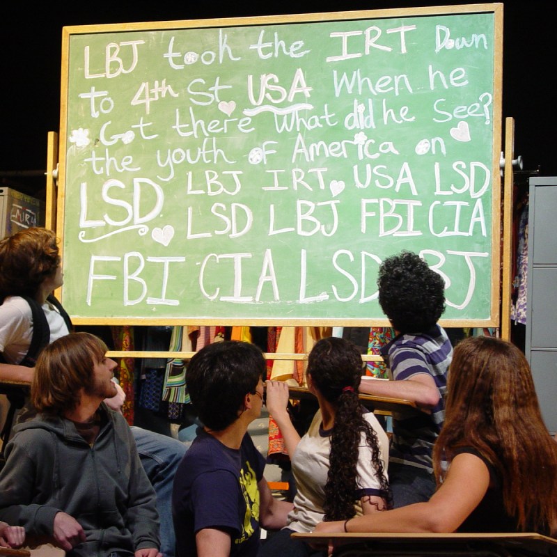 Projects included a deconstruction of the tribal love rock musical HAIR at Berkeley High School (2007). I collaborated with the student cast to use HAIR as a text by which we could interrogate the legacy of the 1960s in Berkeley and its impact (or lack thereof) on the students’ own lives.