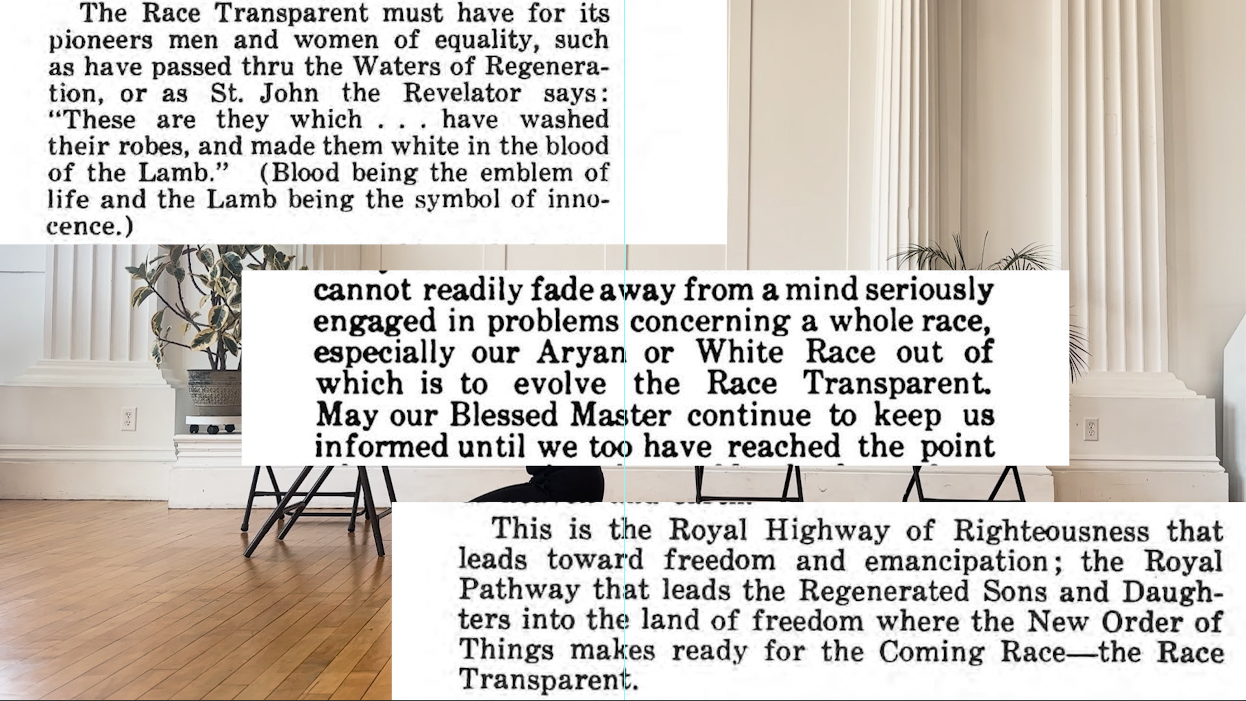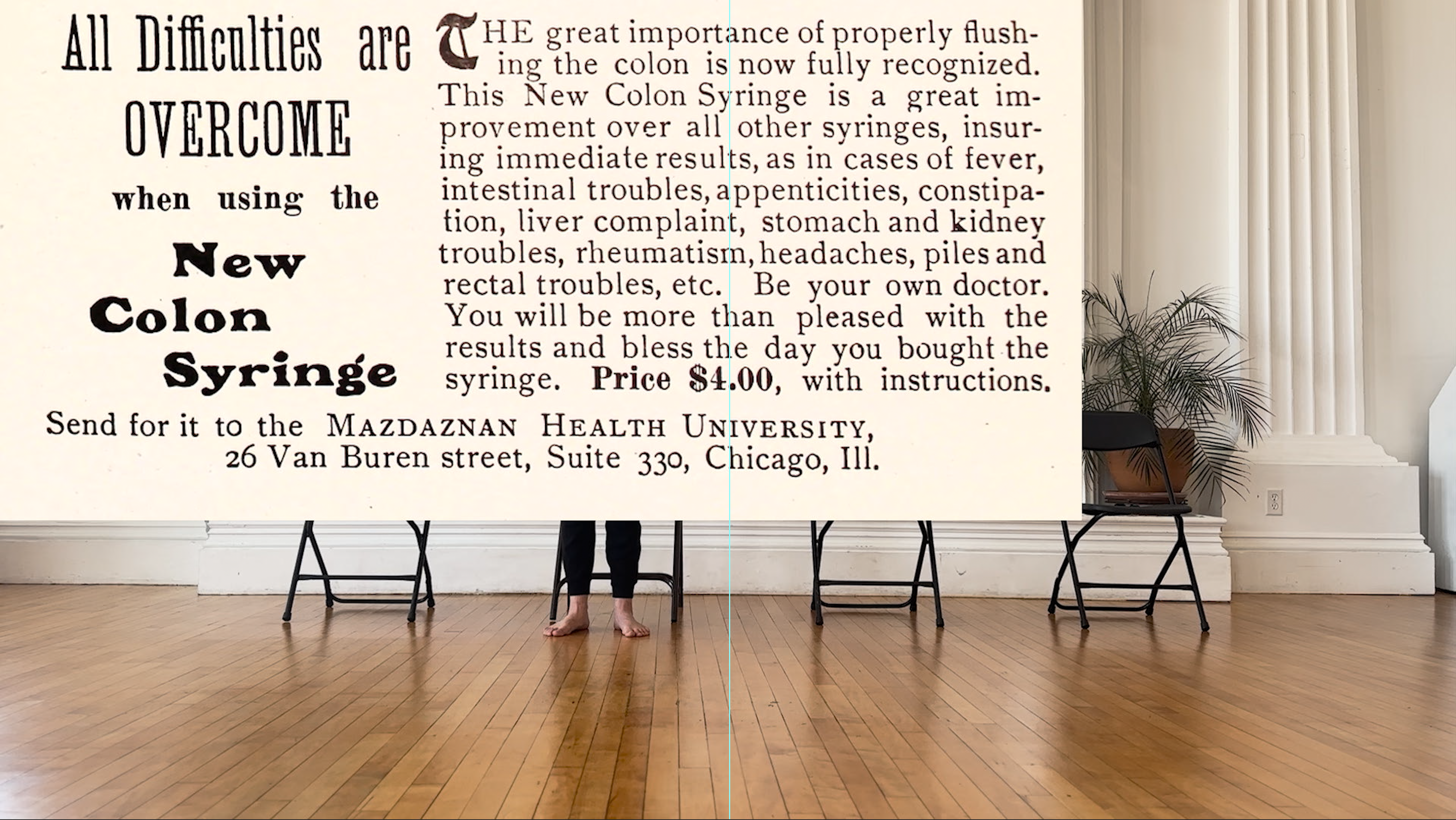 Some of Maya’s work on Mazdaznan takes the form of dance and film. It received a 2024 LAPP Research + Development Grant (for Parents and Caregivers). Early work was shown at the Summer 2024’s First Draft showing at HRLA, curated by Emily Barasch.